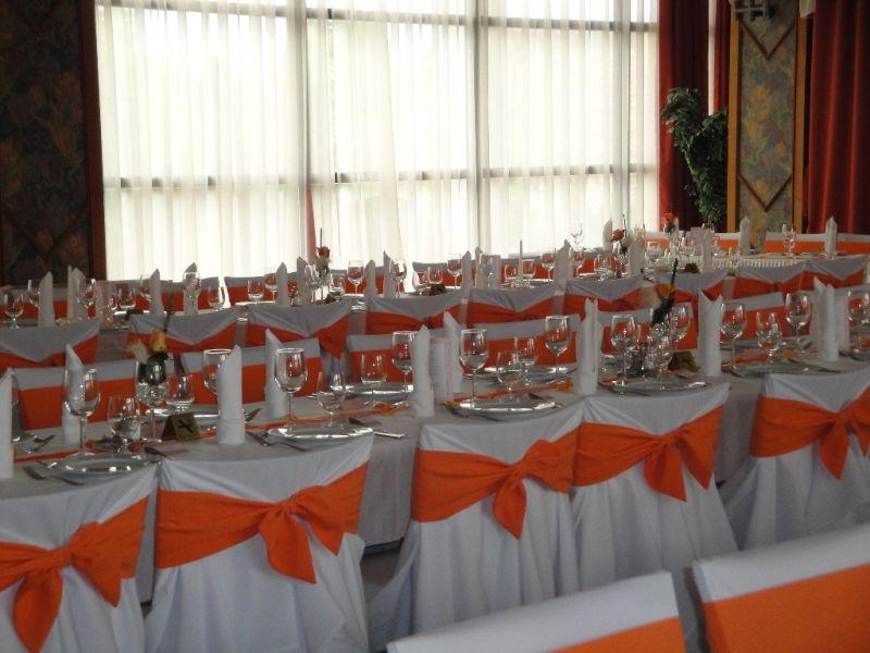 Ma már szinte minden esküvő elengedhetetlen kellékei a székszoknyák, hiszen ünnepivé, még különlegesebbé varázsolják az esküvői dekorációt, kiemelve és erősítve annak színvilágát és harmóniáját. A kezdetekben még csak néhány különböző színű szalaggal rendelkezett Irodánk, ám a nagy érdeklődésre való tekintettel, az évek során újabb és újabb színválasztékok készültek el. Így ma már 16 különböző színű szalagot tudunk ajánlani fehér (minden székre felrakható) székszoknyáinkhoz: fehér, krém, rózsaszín, barack, lila, mályva, pink, narancs, piros, bordó, kék, világoszöld, sötétzöld, gesztenyebarna, étcsokoládé-barna, arany.